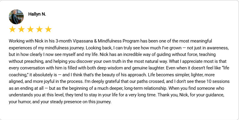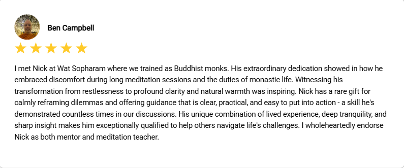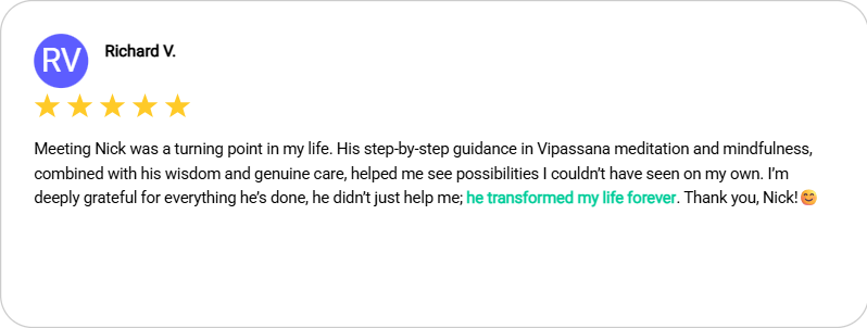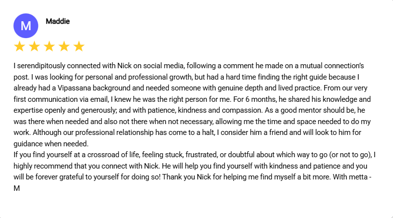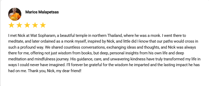 These are just a few notes from people I’ve guided in Vipassana & mindfulness practices — some in the quiet of the temple, others through my online Vipassana mentoring program and some through a blend of all my experience in career and life. A small window into many quiet transformations from anxiety and worry to peace and contentment. A few monks among them as well…