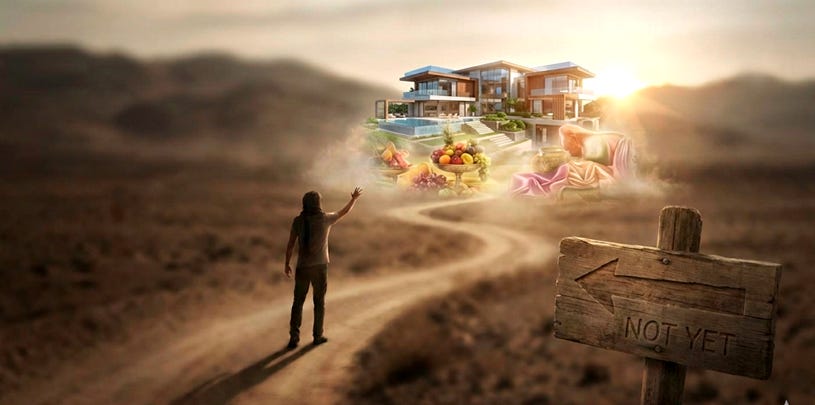 The mind whispers: “Not this. Not yet. But soon — when I get that thing, when I reach that place, when I feel that feeling — then I’ll be okay.”